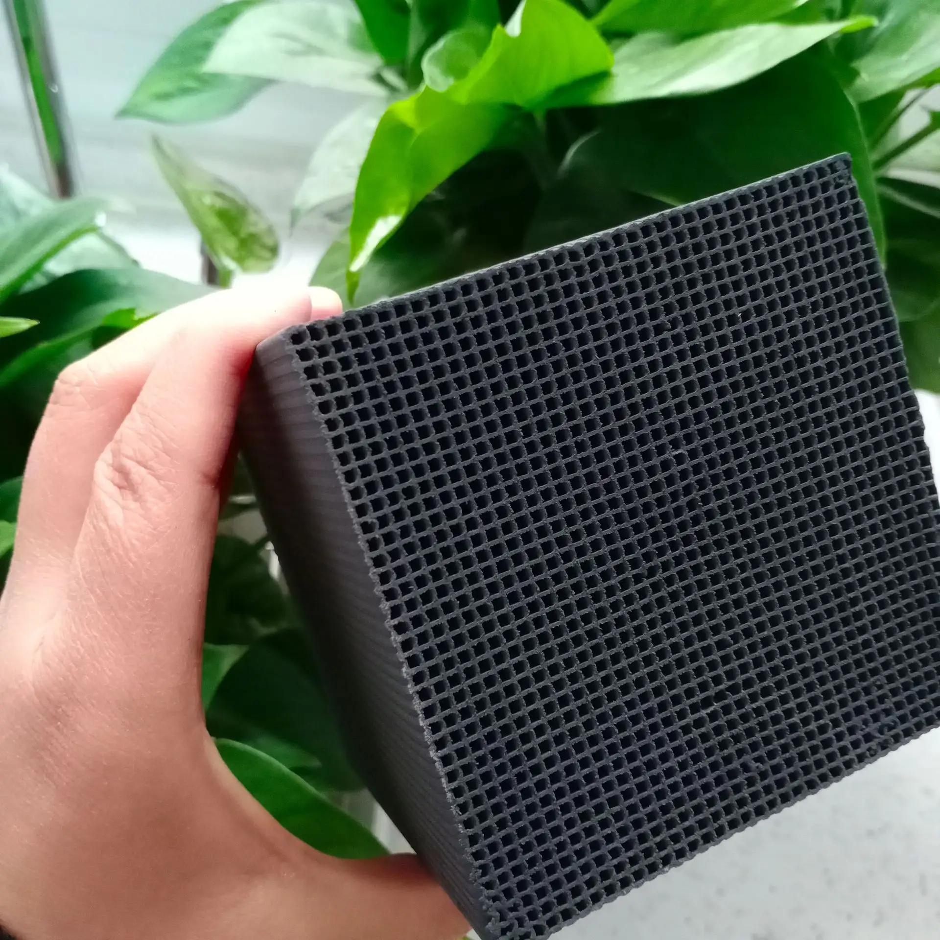 為提升蜂窩活性炭的吸附性,需要在活性炭上開孔盡可能多??锥丛蕉?,越脆、越松,相對密度越輕。所以,一個好的活性炭會感覺更輕。與劣質(zhì)活性炭相比,在相同重量的包裝下,性能更佳。