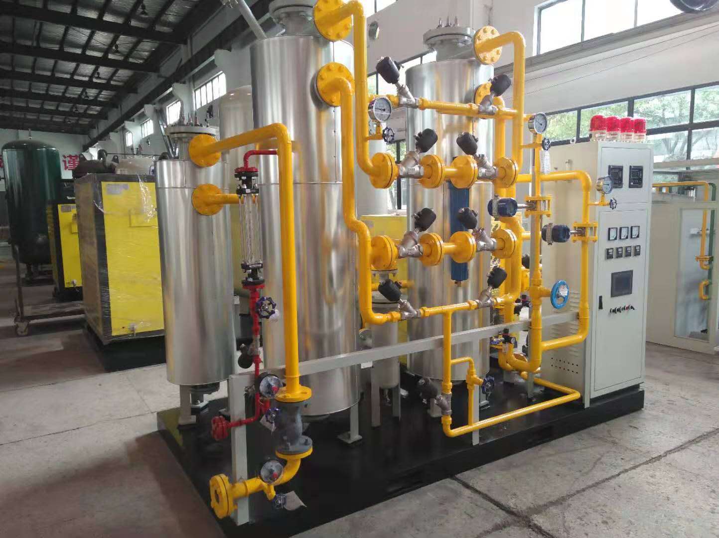 空氣壓縮機(jī)壓縮后,除塵、除油、干燥后,進(jìn)入空氣儲(chǔ)罐,通過空氣進(jìn)氣閥、左吸氣閥進(jìn)入左吸附塔,塔壓升高,壓縮空氣中的氧分子被碳分子篩吸附,未吸附氮通過吸附床,通過左吸氣閥、氮?dú)忾y進(jìn)入氮?dú)鈨?chǔ)罐,稱為左吸,持續(xù)幾十秒。食品小型制氮機(jī)。左吸過程結(jié)束后,左吸附塔與右吸附塔通過上下均壓閥連接,使兩塔壓力平衡。該過程稱為均壓,持續(xù)時(shí)間為2~3秒。均壓后,壓縮空氣通過空氣進(jìn)氣閥和右吸進(jìn)氣閥進(jìn)入右吸附塔。壓縮空氣中的氧分子被碳分子篩吸附,富氮通過右吸出氣閥和氮?dú)猱a(chǎn)氣閥進(jìn)入氮?dú)鈨?chǔ)罐。這個(gè)過程叫右吸,持續(xù)幾十秒。同時(shí),左吸附塔中碳分子篩吸附的氧氣通過左排氣閥降壓釋放回大氣中,稱為解吸。相反,左塔吸附時(shí),右塔也在解吸。為了使分子篩中降壓釋放的氧氣完全排放到大氣中,氮?dú)馔ㄟ^常開的反吹閥吹走吸附塔,將吸附塔中的氧氣吹出吸附塔。這個(gè)過程被稱為反吹,它是同時(shí)進(jìn)行的。食品級(jí)制氮機(jī)。右吸后,進(jìn)入均壓過程,然后切換到左吸過程,一直循環(huán)。