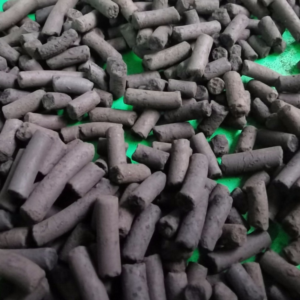 (2)混捏成型工序 混捏成型工序指對于柱狀活性炭生產(chǎn)而言。捏合即是將合格煤粉與定量黏合劑及添加劑在一定溫度下充分攪拌以形成均勻的膏狀物?;炷蠛玫母酄钗镌谝欢▔毫ο陆?jīng)擠壓制成一定直徑的生炭條,稱成型。目前國內(nèi)普遍采用的捏合機為 Z 式攪拌機,成型設(shè)備則常采用二柱或四柱液壓機。