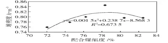 配合煤細度對配合煤堆密度、焦炭機械強度、熱強度及焦炭產(chǎn)量的影響, 用來指導實際生產(chǎn);在一定條件下, 按照實際使用的配比, 進行不同細度下配合煤, 尋找配合煤細度與焦炭質(zhì)量、產(chǎn)量的對應關(guān)系。