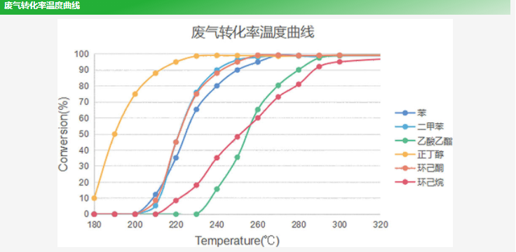 經(jīng)實(shí)驗(yàn)室測試,針對(duì)常規(guī)廢氣,貴金屬催化劑處理效率可達(dá)99%。