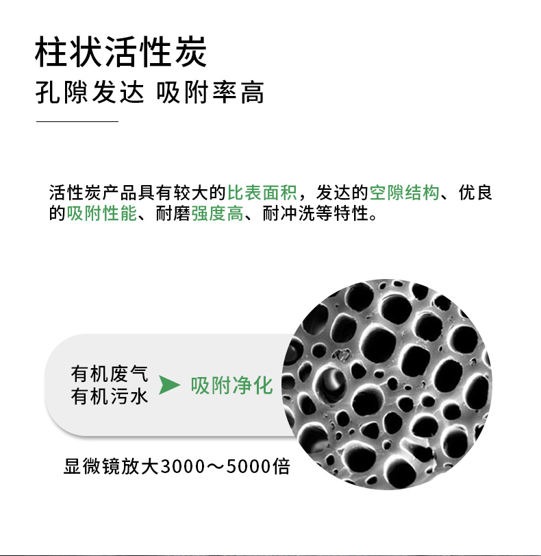 在工業(yè)污水處理中,由于柱狀活性炭易清洗、機(jī)械強(qiáng)度高、吸附容量大,所以一般采用柱狀活性炭??梢杂脕?lái)凈化水。柱狀活性炭以高品質(zhì)煤、椰殼、木屑為原材料,經(jīng)系列生產(chǎn)工藝精加工而成。外觀呈黑色圓柱形微粒,普遍應(yīng)用于氣體處理、污水處理、脫硫脫硝、溶劑回收、制氮機(jī)、空分裝置、噴漆車(chē)間等領(lǐng)域。