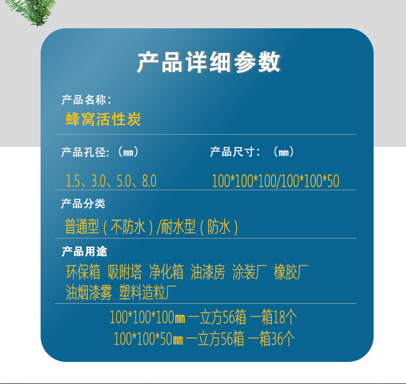 2、 普通型蜂窩活性炭嚴禁沾水,因為活性炭沾水之后可能會散架,如果使用環(huán)境比較潮濕,可以選用耐水型蜂窩活性炭。